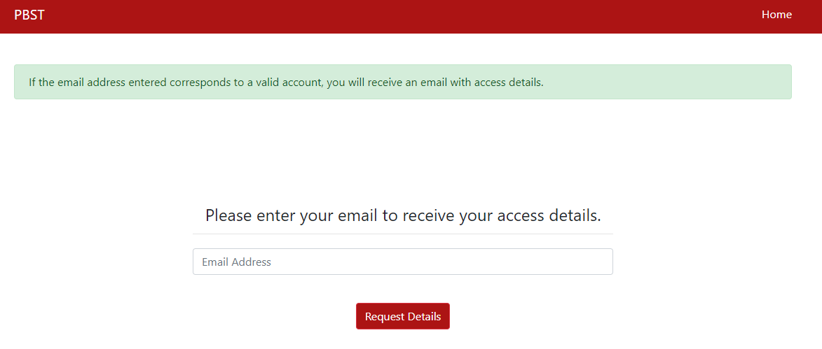 When you are ready you can click the button as the bottom of the page labelled 'Login'. Enter your registered email address when prompted as select 'Request'.